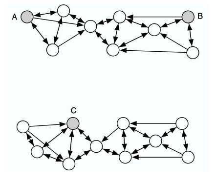 Like many other visualization techniques, t-SNE has a computational and memory complexity that is quadratic in the number of datapoints. This makes it infeasible to apply the standard version of t-SNE to data sets that contain many more than, say, 10,000 points. Obviously, it is possible to pick a random subset of the datapoints and display them using t-SNE, but such an approach fails to make use of the information that the undisplayed datapoints provide about the underlying manifolds. Suppose, for example, that A, B, and C are all equidistant in the high-dimensional space. If there are many undisplayed datapoints between A and B and none between A and C, it is much more likely that A and B are part of the same cluster than A and C. This is illustrated in Figure 5. In this section, we show how t-SNE can be modified to display a random subset of the datapoints (so-called landmark points) in a way that uses information from the entire (possibly very large) data set.
